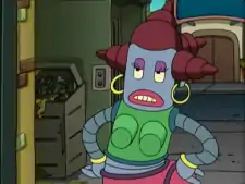 Hermaphrobot is a manbot-to-fembot transgender Robot, who often engages Bender in a subversive manner. On two occasions Bender and Hermaphrobot have run into each other, [1ACV13] [BG] each time with Hermaphrobot outright denying what she assumed to be advances or interest from Bender, although Bender never truly felt or acted in such a manner. She was present at the ceremony for the implosion of the violet dwarf star, [ItWGY] and is a robosexual, as she attented Camp Rectifier in 3010, along with Bender and Fatbot. [6ACV04]