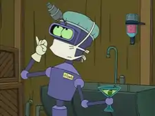 iHawk is a robot doctor who works as a medic in the DOOP Army in the war against Spheron 1. He has two settings: Irreverent and maudlin. Irreverent makes him tell jokes and make fun of people, maudlin makes him unhappy about war. One of his hands is replaced by a martini holder and his name is written on his chest. He frequently argues with Zoidberg when in Irreverent mode as he thinks he is a better doctor and funnier- and given what is known of Zoidberg, he probably is.