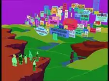 The second type can be accessed through the net suits. It is still filled with ads - which attack people until they give into the demands. Many websites like eBay still carry on strongly, disguises can be downloaded and games can be played. The virtual representation of the person while online is identical to their normal selves - except it has a green tinge. [2ACV09]