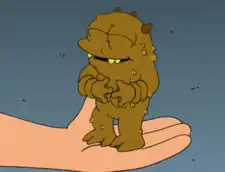 Jrrr is a baby Omicronian who was an essential participant in the second Omicronian invasion of Earth. He was discovered by Leela in a box of week-old Popplers. When he first spoke, Leela found out Popplers were actually an intelligent species and so she tried to save his brothers' and sisters' lives. In return, he saved her from being eaten by Lrrr.