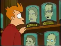 "A Head in the Polls" 1 After Fry mentions to Bill Clinton that he stayed home and watched VH1 on election day, George Bush Sr. mentions there was something on MTV, but Fry says that he is a VH1 guy and Jimmy Carter responds "Loser!" Addition