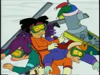 "Xmas Story" 1 Amy on skis crashes into the others and Bender remarks that she'll finally meet his lawyer, when she mentions that she already slept with him. Addition