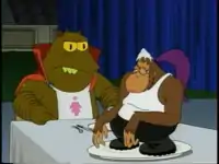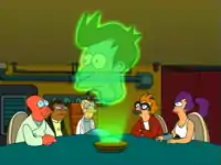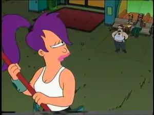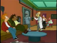 "Teenage Mutant Leela's Hurdles" 1 Farnsworth makes out a scene at the lunch room. Addition