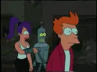 "The Why of Fry" 1 Bender asks what Fry what he wants to do, Fry asks if they could go see a film, Bender snatches onto a passing bus and before he is dragged along he says "let me think about it." Addition