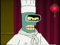 2 Bender tells everyone that they have to go back to Oktoberfest because his sausage made the finals. Leela looks worryingly at her chicken hat upon hearing about Oktoberfest, before saying "Sounds like fun! I can't remember the last time I had a good sausage." This prompts Bender to say "I can, and it went by the name of-", being interrupted by Scruffy placing a plunger on his mouth before he can say "Fry". Addition