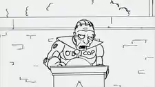 "Law and Oracle" 1 At the police graduation Chief O'Mannahan introduces Connor O'Bocop, a retired cyborg peace officer. During his speech, his programming fails, and the crowd responds with applause. Two officers drag the body away, with the Chief telling them to "give his face to his widow, and toss the rest". Addition