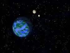 Description: Three moons orbiting planet Omicron Persei VIII.