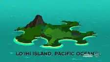 The Lo'ihi Island is located on the Pacific Ocean. Zapp and Leela crash landed there after first attacking the V-GINY, believing it to be another planet. Due to its mild climate and food as well as delusions, Leela come to believe it is a divine metaphor for a second Garden of Eden, and decides to repopulate the human race with Zapp after thinking Earth has been destroyed.