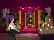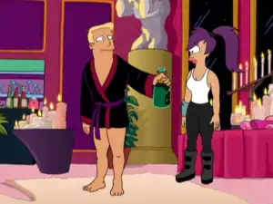 25-Star General Zapp Brannigan refers to his Captain's Quarters as the Lovenasium. It is a large room lavishly decorated in pink and purple velour, shag carpeting, marble statues and a few green plants. Its centerpiece is a large oil painting of Zapp and a floating, remote controlled, heart-shaped bed. The room is dimly lit by candlelight and features a cluster of recessed spotlights over the bed. There is a wet bar to one side, which is stocked with champagne and sex toys. The rear of the room has large floor-to-ceiling windows which allow for fantastic views.