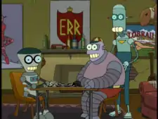This is the famous Mars University, founded in 2636, with several mottos including "Knowledge Brings Fear" and "A Giant Pulsating Mind is a Terrible Thing to Waste". Mars University has the largest library collection in the western universe (namely two optical discs: one for "Fiction", and one for "Non-Fiction"). Its organization and premises resemble modern universities quite a bit (fraternities, traditional college foliage, acceptance of students in exchange for donations, etc). Professor Farnsworth teaches the "Mathematics of Quantum Neutrino Fields" class, while Amy is one of the students. The University students are alien, humans and even robots. During the "Mars University" episode Fry enrolled in order to become a certified college drop-out once more. As well as, Bender said to have previous studied here and returned to steal and trash the school once more.