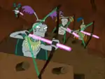 Martians, also known as Native Martians are a species from Mars and they live in the Martian Reservation, inside the Great Stone Face of Mars. They once owned the land and the Buggalo, but sold it to Sir Reginald Wong for a gigantic diamond which they assumed was a worthless bead. They tried to steal the Buggalo and get their land back, until they found out they hadn't been screwed over after all and the diamond made them exceptionally wealthy. After this realization, they left to find a new home, dismissing Mars as a dump. The Martians often protest that their ancestors' bones aren't treated with respect.