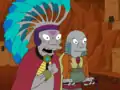 Not much is known about the history of the Native Martians, although it is known that prior to their exchange of half of Mars for Sir Reginald Wong's bead, they had left a doomsday calendar on Earth as a warning to Earthlings for the destruction of Mars. After the purchase of their land, the natives were forced off their land and went to live in a reservation buried deep under the stone face of Mars. Over time, the natives' descendants grew resentful over the sale (which they considered illegitimate due to not knowing the true value of their bead) and, in acts of petty vengeance, plagued Mars with dust storms, and eventually went as far as to first steal the Wong's buggalo, then kidnap the heir of Wong Ranch. [3ACV10] During the negotiations, the truth about their "bead" was revealed and the chief, both delighted at their vast new wealth and satisfied with his ancestor's trade, took his tribe and left Mars. The Native Martians' current planet of residence is unknown. Despite this, some Martians can still be seen in Mars, most specifically within Mars Vegas.