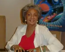 Nichelle Nichols is an American actress, singer and voice artist. Her most famous role is that of communications officer Lieutenant Uhura aboard the USS Enterprise on Star Trek, as well as the succeeding motion pictures, where her character was eventually promoted in Starfleet to the rank of commander. For Futurama, Nichols voiced herself in the episode "Anthology of Interest". She later returned in the episode "Where No Fan Has Gone Before" alongside her costars from Star Trek.