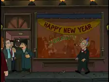 O'Grady's Pub was a pub in Old New York. On 31 December 1999, Fry passed there while on his way to deliver a pizza at Applied Cryogenics, [1ACV01] [2ACV16] and Nibbler and his personal chauffeur went drinking there. [7ACV23] By 3000, a similar pub had been built in New New York. [1ACV01]