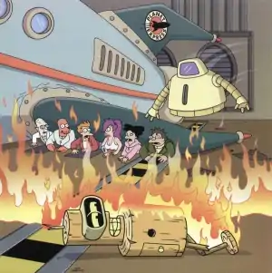 - The Planet Express ship leaks fuel which sets a light putting the crew in danger, even though the ship is powered by dark matter.