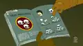 ![]() Jrrr holding up the Omicronian handbook to his father, in 3013. [7ACV16] The cover has a "fleur-de-lis" on it. | |