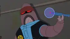 Paco is a student at Columbiac University, and a member of the Ink Jets gang. In 3012, he attended class with Bender, shared some spark with him, attacked him, after he took the spark for himself, and agreed to sell the spark to him, for five bucks, although the sale was stopped by the Robot Mafia, who took the money (7ACV09). Before this, Zapp and Kif fought in the battle of Paco's Tacos, a Mexican restaurant (7ACV05).