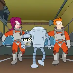 The three primary crew members (from left): Leela, Bender and Fry.
