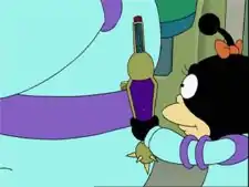 The quantum interphase bomb is a Nibblonian weapon, designed to hurl the target into an alternate universe from which there is no escape. It is used to cross the plans of the Brain Spawn to understand and destroy the universe. With the help of the Infosphere, the Brains wanted to collect all the information in the universe, and then the universe was to be destroyed so there could be no new information. The bomb did its job and transferred the Infosphere to an alternate universe, only Fry was able to escape from there back to 31 December 1999 due to his unique properties.