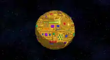 Each is constructed in a very similar fashion to the Death Star from Star Wars, but is made entirely of gold with giant diamonds encrusted on it. Unlike the Death Star from Star Wars, these are much more penetrable and vulnerable; their largest defense is their amount and the fact that they are remote-controlled.