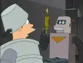Robot Mayor: Bender, good news! Your album just went gold! [Spots Fry and Leela] WHAT the?!