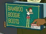 Description: An entertainment product consisting of boots that produces long bamboo stilts, which are apparently hard to get the hang of. Carries a large and prominent warning label, and are highly flammable.