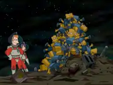 Description: Cute bears are genetically engineered by Romanticorp. They are raised in the "Lovey Forest" until their first birthday, then, the cuddly-uddliest ones are killed then stuffed full of "fire-retardant love fluff". They are a blatant parody of Care Bears.
