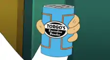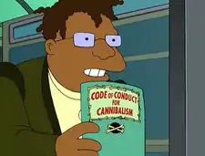 Description: A very special antique cigar sold at Hacking Jack's Fine Smokables costing $10,000. According to Hacking Jack, this cigar's wrapper is a piece of the original U.S. constitution, was rolled by Queen Elizabeth (during her "wild years"), and was buried with George Burns until grave-robbing space mushrooms, "...well, you know the rest." The price is significant, as $10,000 is the minimum value for a stolen item to be considered 'grand theft'; Bender makes off with it and is later charged with Grand Theft Tobacco for stealing it.