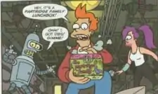 Description: A lunchbox bearing the logo of the 1970s television series The Partridge Family.