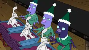 Santa Claus' aides are Neptunians who help Robot Santa Claus. They live in the Jolly Junction, on Neptune, and are very shrimpy, because he doesn't feed them. The aides make toys, and gladly work for nothing, but were once forbidden to do so, since Santa judged everyone to be naughty. However, they got back in business after Bender, their hero, Fry, and Leela arrived in the Death Fortress and defeated Robot Santa Claus.