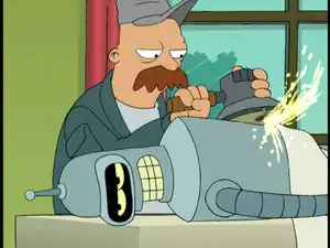 Scruffy: Somebody called "the robot devil" is here to see somebody called "Fry".