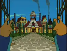 The Slurm Factory is the factory of Slurm located on the planet Wormulon. From outside it looks like a copy of the Chocolate Factory from Charlie and the Chocolate Factory.
