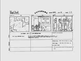 - Scenes 93-100: Leela cuts to Fry's teenage years. Images of him watching The Simpsons; in Dave Borden's office; and in his A.V. Club with nerdy teens.