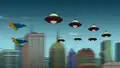 Bender: [He crashes down in a flying saucer, and grabs both the Nobel Prize and the check.] I accept this Nobel Peace Prize not just for myself, but for crime Robots everywhere. Skål! [He takes off, and the audience claps. He is then pursued by a three-fighter-aircraft.] Not so neutral now, are you, Sweden?