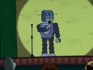 Description: A late-night talk show hosted by Humorbot 5.0 in the vein of those seen in the 20th and 21st centuries.