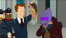 The Scary Door is a science-fiction horror television program in the 31st century. It is a spoof of the classic science-fiction TV series The Twilight Zone, and references several other TV shows and films, including the ending of War of the Worlds. Seven episodes of The Scary Door have so far been seen in Futurama media.