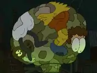 | "Put Your Head on My Shoulders" (2ACV07) | Sewing a head on someone's shoulder was previously done in "Treehouse of Horror II" (8F02) with Mr Burns' head being sewn on to Homer's body. | ![]() |
