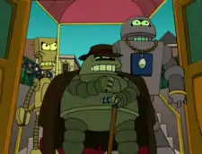 | "Trilogy of Error" (CABF14) | Linguo bears a slight resemblance to Bender. For example in the shape of the head and antenna. Moreover, Homer gets Linguo to drink beer which again may be a reference to Bender. | ![]() |
