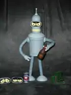 | Bender (reissue) | ![]() | August 2011 | Accessories: Mom's Old-Fashioned Robot Oil can, Olde Fortran bottle, stack of money, two extra sets of eyes with different expressions Observations: This is the second reissue of Bender, however the previous, paired with a Fry reissue, had the same accessories and mouth as the original release excluding the build-a-bot parts. |