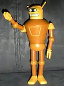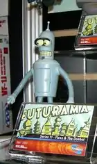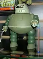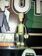 In 2007[1] the Toynami toy line received the rights to produce Futurama action figures. There have been other lines with this license, but none lasted long. However, this is the longest consistent action figure line, with 9 series so far released, and at least 10 series currently planned. The figures are an average of 6 inches or 15 centimetres tall. As of 23 April, 2013, the main line of figures and the talking Robot Devil are officially cancelled, with the Tineez and plush lines to continue. A Kickstarter campaign was announced by Toynami at San Diego Comic Con 2013 for the main series Mobro but never materialised. Toynami has announced that 2014 is the final year of their Futurama licence.