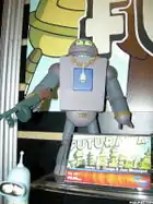 Observations: Although hat looks precariously placed upon his head, it is actually held on with a magnet. Parts are not available in the re-release of series 1 figures or the Fry/Bender encore set. |