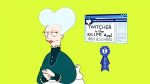 Twitcher is a famous social network created by Mom. Lots of people are addicted to it, and often upload videos in it. Mom programmed a Twit-worm to control the minds of all Twitcher users so they buy the new eyePhone 2.0 once a user reaches his one millionth follower. Since, upon the activation of the Twit-worm, both Bender and Fry had one million followers, between one and two million zombies walked into the Mom Store to buy the new eyePhone. Information gained over "Twitcher" is often used for advertising purposes.