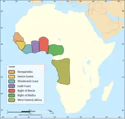 The vast majority of those who were enslaved and transported in the transatlantic slave trade were people from several Central and West African ethnic groups. They had been captured directly by European slave traders in coastal raids,[13] or sold by West African slave traders, or by half-European "merchant princes"[14] to European slave traders, who brought them to the Americas.[15]