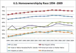 The desperate conditions of African Americans in the South sparked the Great Migration during the first half of the 20th century which led to a growing African American community in Northern and Western United States.[70] The rapid influx of Blacks disturbed the racial balance within Northern and Western cities, exacerbating hostility between both Blacks and Whites in the two regions.[71] The Red Summer of 1919 was marked by hundreds of deaths and higher casualties across the US as a result of race riots that occurred in more than three dozen cities, such as the Chicago race riot of 1919 and the Omaha race riot of 1919. Overall, Blacks in Northern and Western cities experienced systemic discrimination in a plethora of aspects of life. Within employment, economic opportunities for Blacks were routed to the lowest-status and restrictive in potential mobility. At the 1900 Hampton Negro Conference, Reverend Matthew Anderson said: "...the lines along most of the avenues of wage earning are more rigidly drawn in the North than in the South."[72] Within the housing market, stronger discriminatory measures were used in correlation to the influx, resulting in a mix of "targeted violence, restrictive covenants, redlining and racial steering".[73] While many Whites defended their space with violence, intimidation, or legal tactics toward African Americans, many other Whites migrated to more racially homogeneous suburban or exurban regions, a process known as White flight.[74]