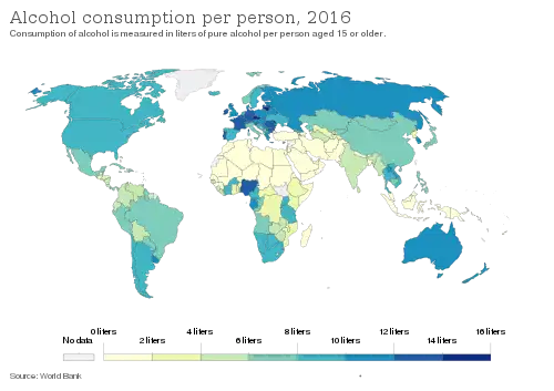 - ^ "Alcohol consumption per person". Our World in Data. Archived from the original on 16 March 2020. Retrieved 5 March 2020.