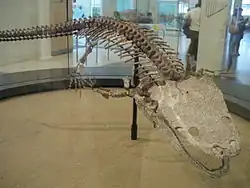 The smallest amphibian (and vertebrate) in the world is a microhylid frog from New Guinea (Paedophryne amauensis) first discovered in 2012. It has an average length of 7.7 mm (0.30 in) and is part of a genus that contains four of the world's ten smallest frog species.[40] The largest living amphibian is the 1.8 m (5 ft 11 in) Chinese giant salamander (Andrias davidianus)[41] but this is a great deal smaller than the largest amphibian that ever existed—the extinct 9 m (30 ft) Prionosuchus, a crocodile-like temnospondyl dating to 270 million years ago from the middle Permian of Brazil.[42] The largest frog is the African Goliath frog (Conraua goliath), which can reach 32 cm (13 in) and weigh 3 kg (6.6 lb).[41]