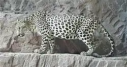 The leopard's range in West Africa is estimated to have drastically declined by 95%, and in the Sahara desert by 97%.[81] In sub-Saharan Africa, it is still numerous and surviving in marginal habitats where other large cats have disappeared.[82] In southeastern Egypt, an individual found killed in 2017 was the first sighting of the leopard in this area in 65 years.[83]