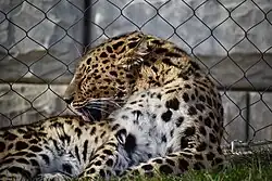 In Myanmar, leopards were recorded for the first time by camera traps in the hill forests of Myanmar's Karen State.[95] The Northern Tenasserim Forest Complex in southern Myanmar is considered a leopard stronghold. In Thailand, leopards are present in the Western Forest Complex, Kaeng Krachan-Kui Buri, Khlong Saeng-Khao Sok protected area complexes and in Hala Bala Wildlife Sanctuary bordering Malaysia. In Peninsular Malaysia, leopards are present in Belum-Temengor, Taman Negara and Endau-Rompin National Parks.[96] In Laos, leopards were recorded in Nam Et-Phou Louey National Biodiversity Conservation Area and Nam Kan National Protected Area.[97][98] In Cambodia, leopards inhabit deciduous dipterocarp forest in Phnom Prich Wildlife Sanctuary and Mondulkiri Protected Forest.[99][100] In southern China, leopards were recorded only in the Qinling Mountains during surveys in 11 nature reserves between 2002 and 2009.[101]
