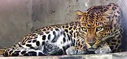 - ^ Pirie, T. J.; Thomas, R. L.; Reilly, B. K. & Fellowes, M. D. E. (2014). "Social interactions between a male leopard (Panthera pardus) and two generations of his offspring". African Journal of Ecology. 52 (4): 574–576. Bibcode:2014AfJEc..52..574P. doi:10.1111/aje.12154.
