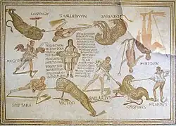 "Panther" is another common name, derived from Latin panther and ancient Greek πάνθηρ (pánthēr);[3] The generic name Panthera originates in Latin panthera, a hunting net for catching wild beasts to be used by the Romans in combats.[7] Pardus is the masculine singular form.[8]